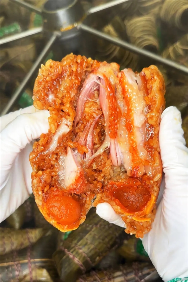 当然,南方的咸粽版图也不止于江南,老广人最爱的广式卤肉粽,肉多料足,腌肉肥而不腻,配上糯米香咸适口;潮汕的海鲜粽则极有野心,粽中容纳着鲍鱼、干贝、烤虾.....林林总总,一只小粽子,却足以包得下一整个菜市场的鲜美!