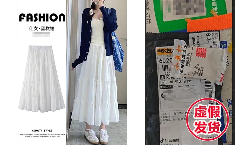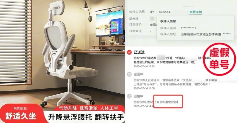左:低价引流商品;右:商家上传与收货地址不符的虚假运单信息