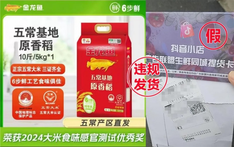 左:商家销售的大米;右:实际发的提货卡