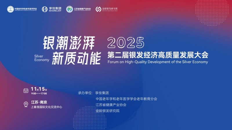 在我国人口老龄化进程持续加快的背景下,推进健康老龄化已成为实施积极应对人口老龄化国家战略的关键举措。2024年,国务院办公厅以1号文件印发《关于发展银发经济增进老年人福祉的意见》,从国家顶层设计层面正式开启了“银发经济元年”。值此重要契机,由享佳集团、中国老年学和老年医学学会老年教育分会、江苏省健康产业协会以及金龄银发研究院共同承办的第二届银发经济高质量发展大会,定于2025年11月15日在江苏南京盛大启幕。